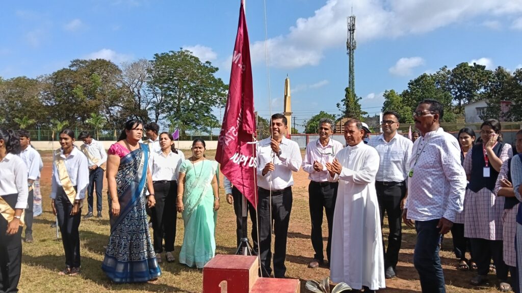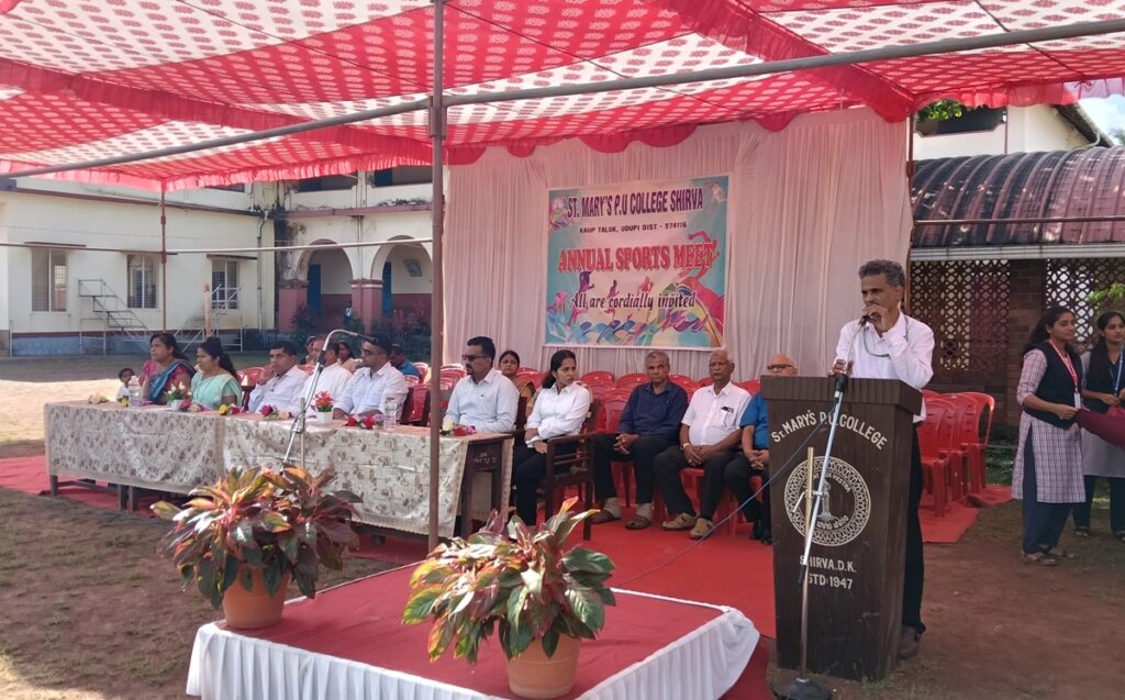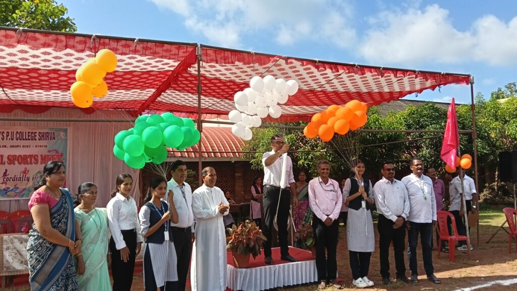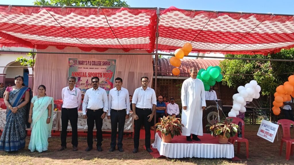 Very Rev. Fr. Dr. Leslie Clifford D’ Souza, Correspondent of St Mary’s PU College, Shirva hoisted the flag and handed over the sports light to the athletes.